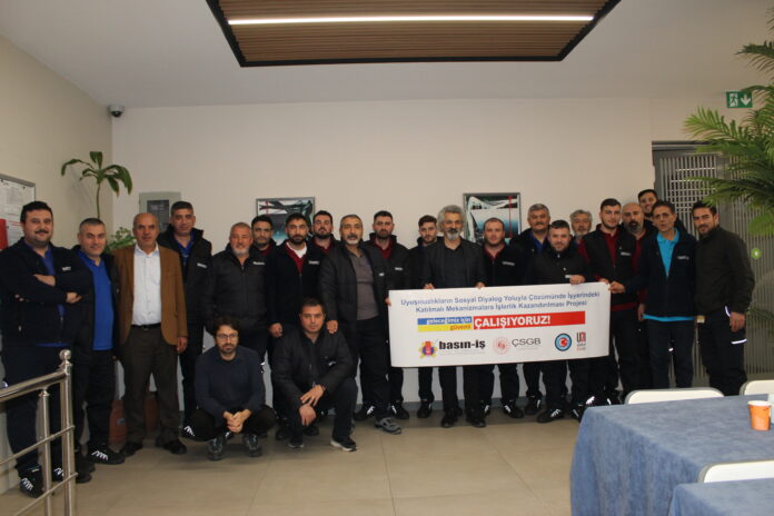 Sendikamız ile T.C. Çalışma ve Sosyal Güvenlik Bakanlığı tarafından yürütülen “Uyuşmazlıkların Sosyal Diyalog Yoluyla Çözümünde İşyerindeki Katılmalı Mekanizmalara İşlerlik Kazandırılması Projesi” kapsamındaki ikinci eğitim, 23 Aralık 2025 tarihinde Ankara Beytepe’de faaliyet gösteren Meteksan Matbaacılık ve Teknik Sanayi Ticaret A.Ş. Baskı Tesisi işyerinde gerçekleştirildi.